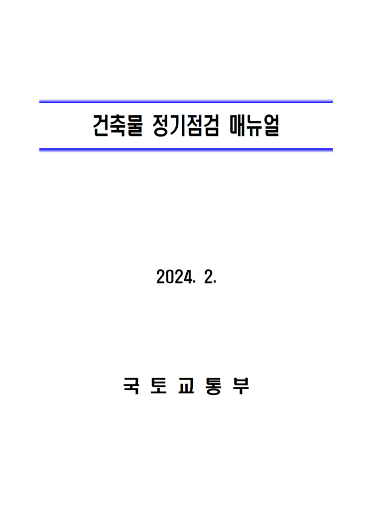 국토교통부에서는 2024년 2월 <건축물 정기점검 매뉴얼>을 개정, 발표하였습니다. 이번 개정 발표는 건축물 정기점검의 필요성을 좀더 명확화하기 위한 개정입니다.