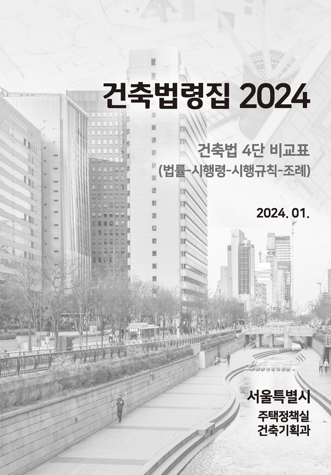 서울시 주택정책실 건축기획과에서 발간한 “건축법령집 2024 (건축법 4단 비교표)”이 있어서 이번 글에 소개합니다.