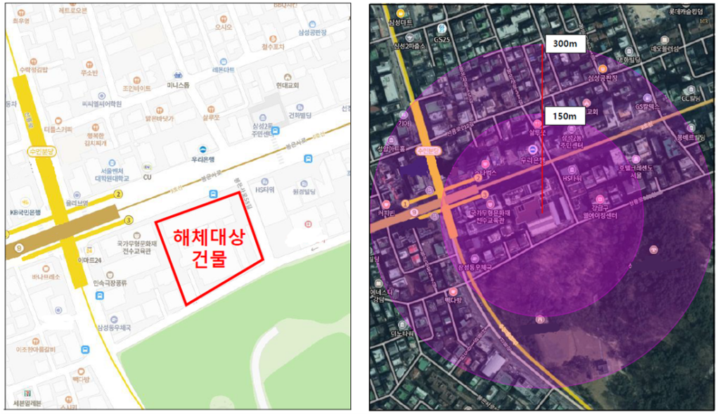 (3) 내·외부 해체공사 : 내부 소구조물 해체, 화재 전소물 등 해체, 내부 소각폐기물 해체, 외부 낙하물 우려가 있는 외장재(석재, 유리 등) 우선 해체